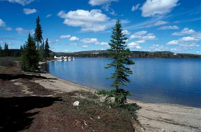 For over 100 miles I followed this awesome wide river as it headed north to Ungava Bay. The clouds were gone, the visibility was forever and the ride was smooth at 1,500 feet; so much for the forecast I had received this morning. Then I saw something in the water, crossing from west to east, trying to get to the other side. Caribou! I was amazed and excited and down lower I went with the video camera ready. The Husky can be flown with the window and door open, by setting the elevator trim so you fly with your feet. 1,975RPM 15-16 inches of manifold pressure and maybe a notch or two of flaps. It requires that you dress warmly and have gloves with open fingertips to help run the cameras. Back and forth I went, from one side of the river to the other, taking pictures and video. I don't remember how many of these small herds I saw, but the experience was memorable. Northern Quebec has one of the world's largest concentrations of caribou, nearly a million animals. Occasionally I would pass an abandoned camp on the riverbank that would be used by native hunters and fishermen.