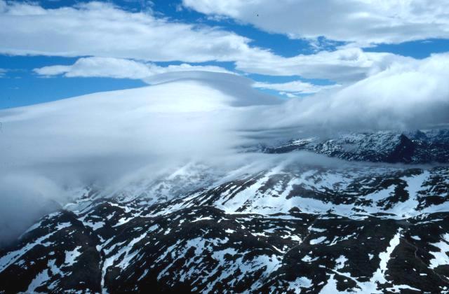 On Sunday the ceilings lifted so I flew across the bay and then headed south towards York Sound and an alluvial flood plain between two large glaciers. I had advised the military rescue coordinator of my route, and I circled into many of the dead end fiords on the southern coast, looking for Sam, but when I reached the beginning of the Everett mountains, it was getting very windy. A huge lenticular cloud blocked my path, I turned around, headed back to cross the bay at an island chain called Frobishers' Furthest, and then followed the north shore into Iqaluit.